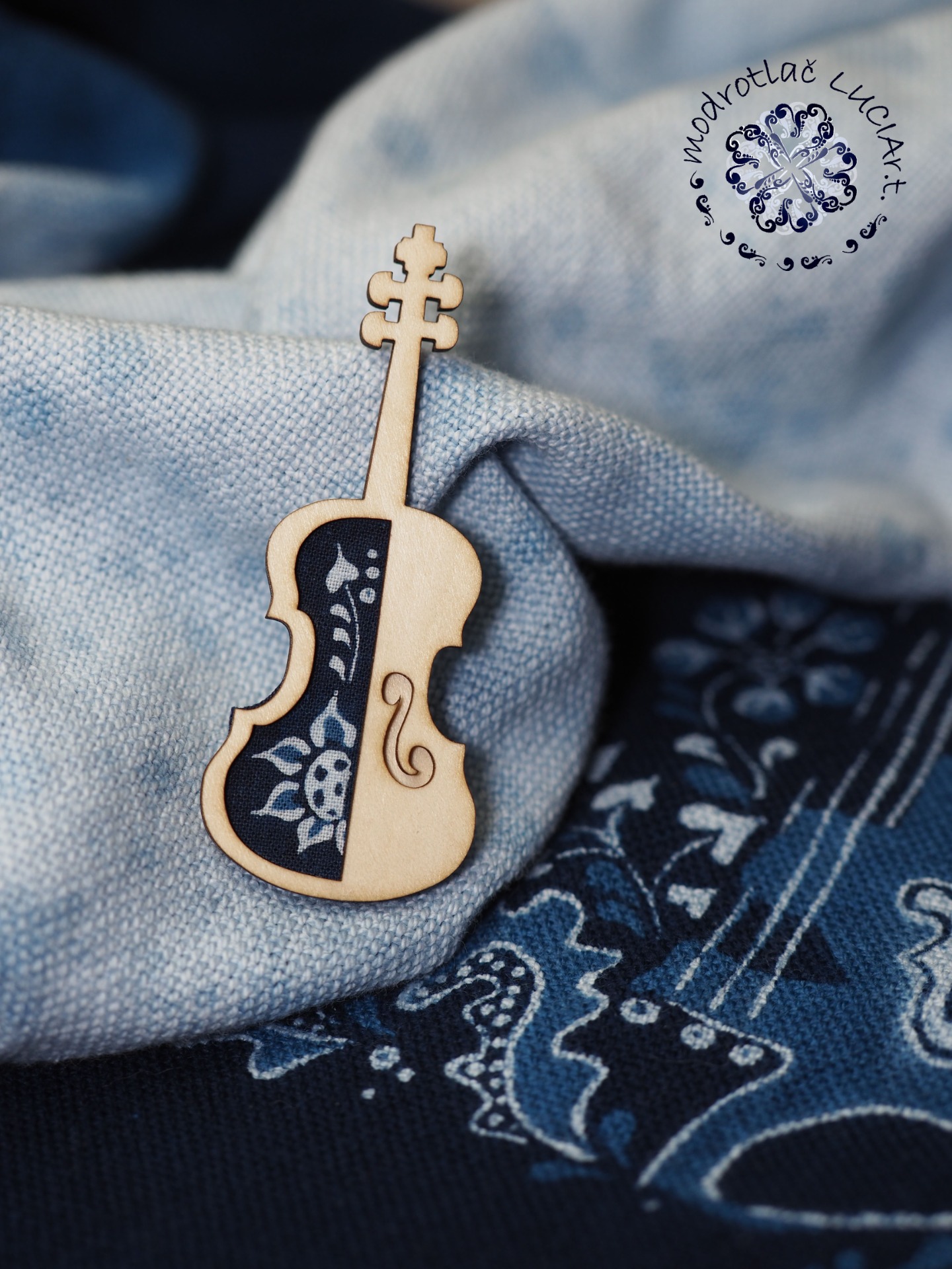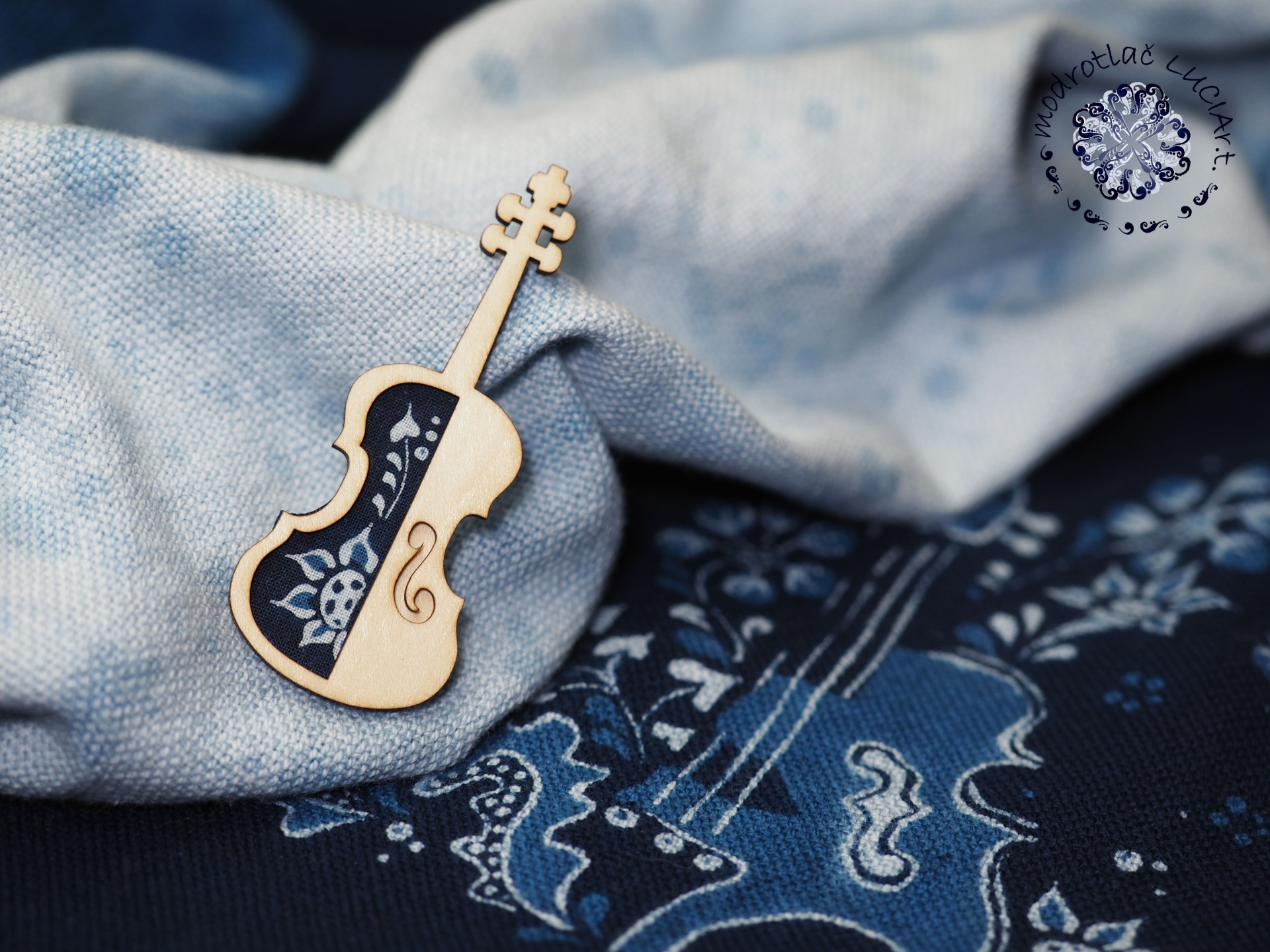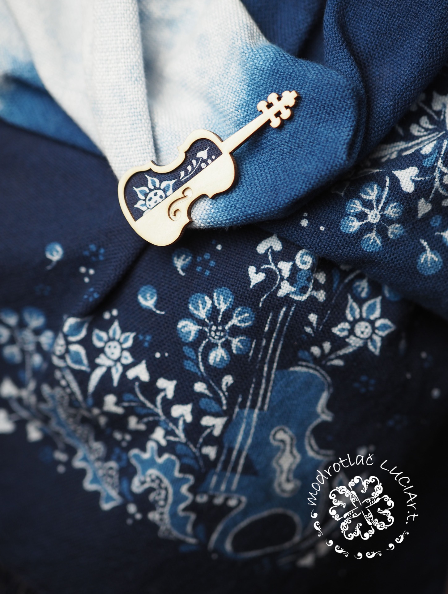 Brošničky nie sú tvorené z vystrihnutých kúskov látky, ale každý jeden vzor je osobitne "maľovaný" papom a farbený v indigu