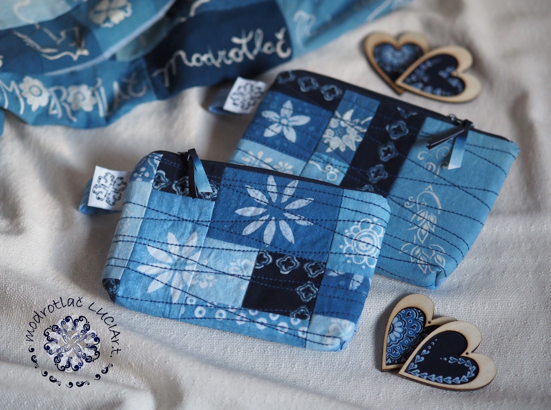 Modrotlač: modrotlač vzorujem i farbím vo vlastnej dielničke Modrotlač LUCIA r.t., technologicky tradične, vzorovanie ručné.