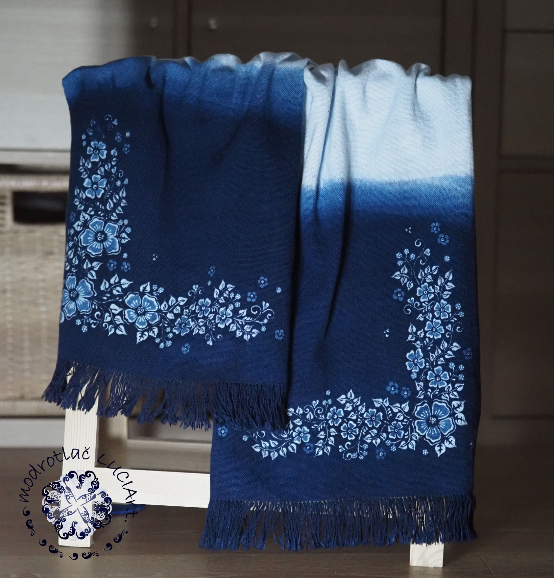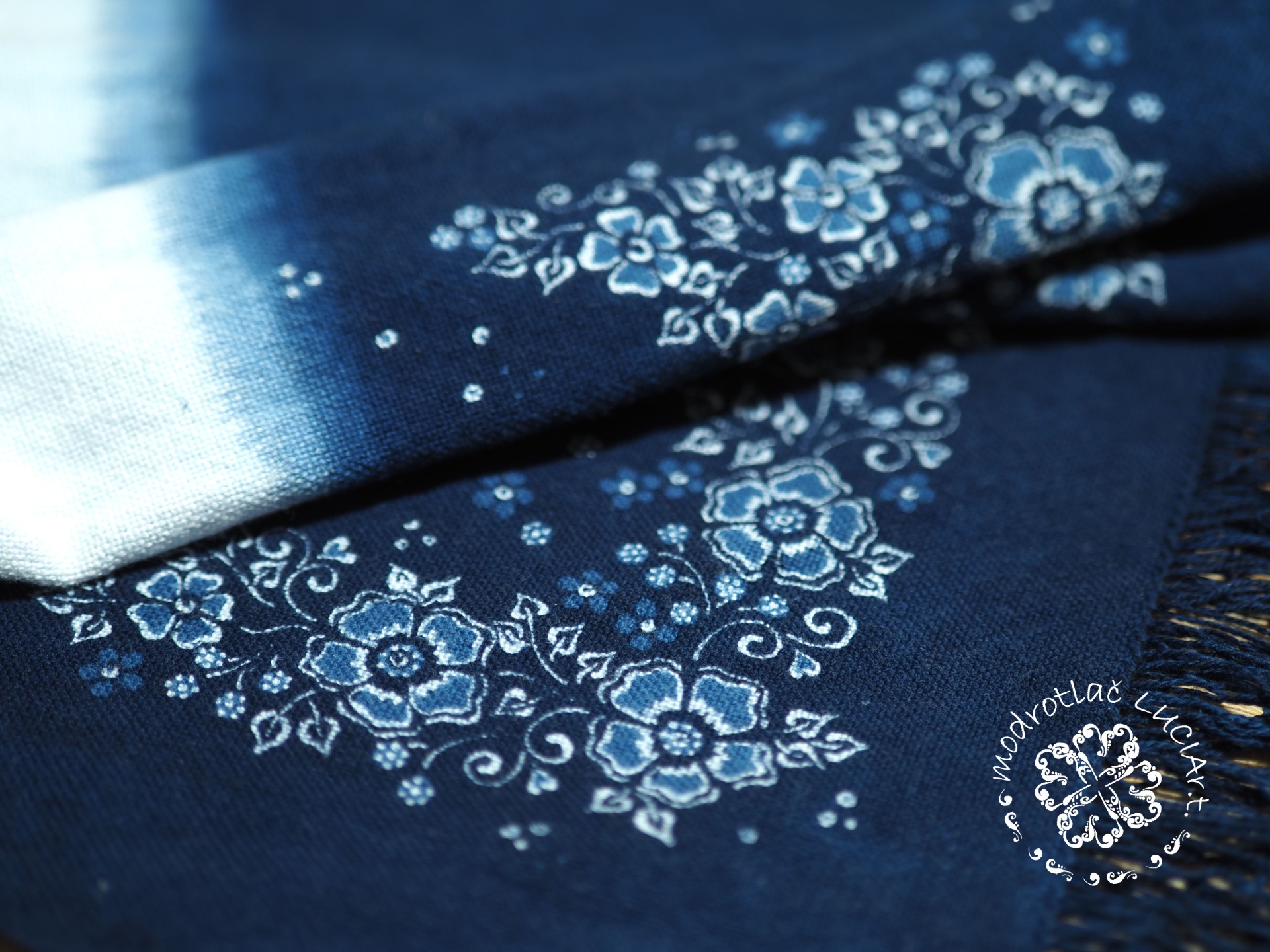 Modrotlač: modrotlač vzorujem i farbím vo vlastnej dielničke Modrotlač LUCIA r.t., technologicky tradične, vzorovanie ručné. Preto vzory sa môžu pri každom jednom produkte líšiť.