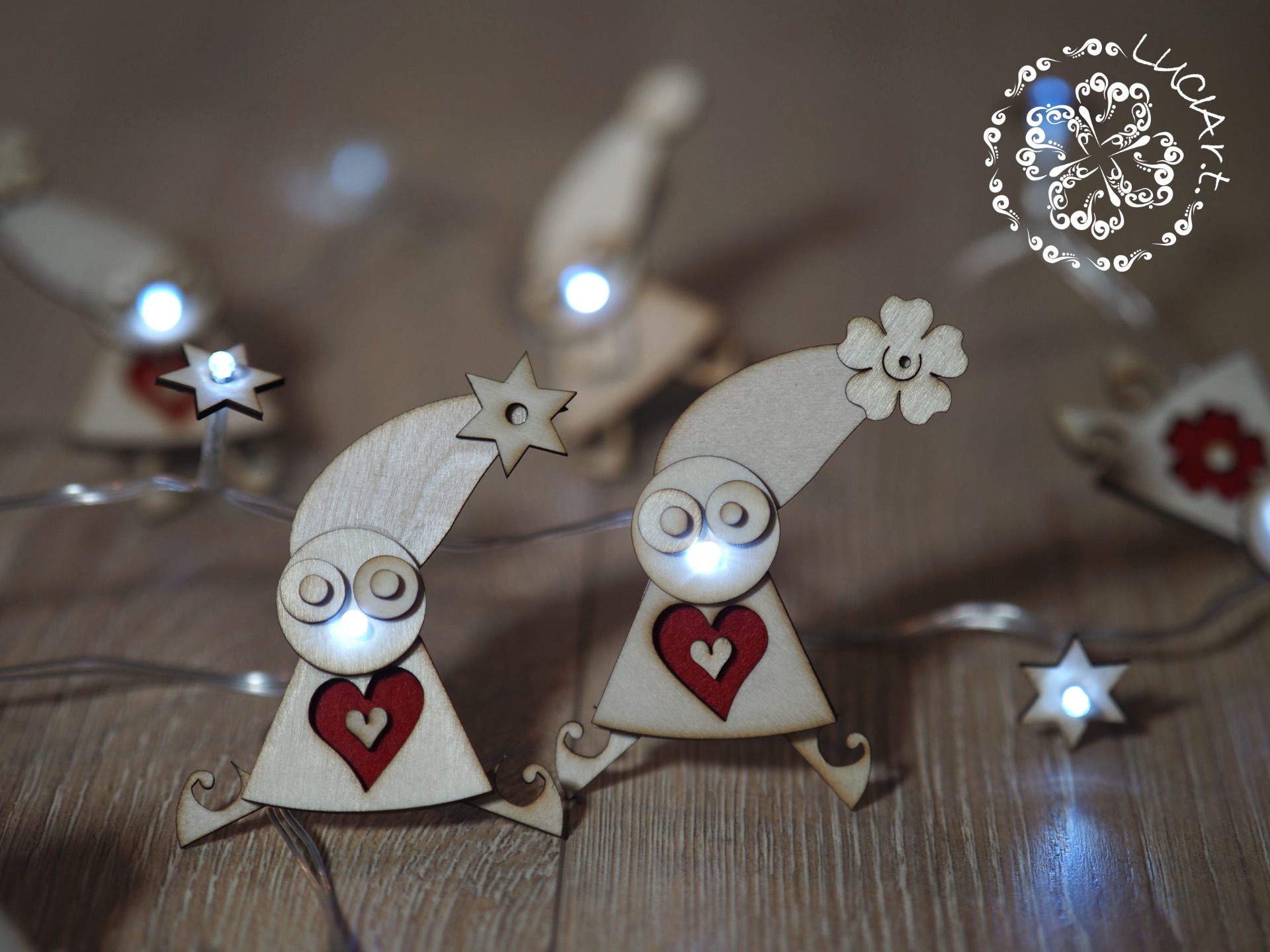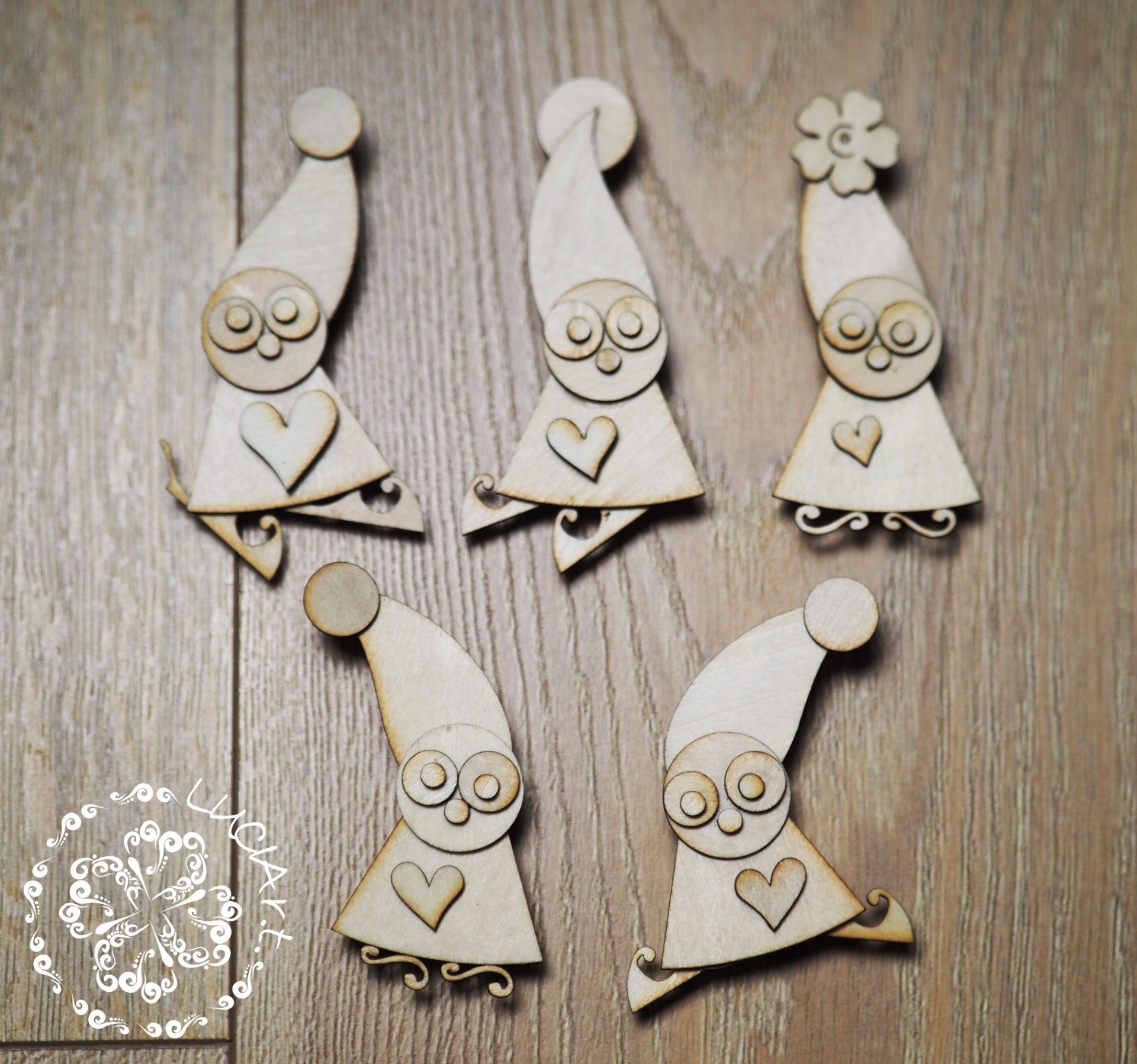 Rôzne sady výrezov z preglejky hrúbky cca 2mm, ktoré si môžete poskladať, zlepiť i vymaľovať, zavesiť na šnúrku alebo prilepiť na štipček (ak si želáte pribaliť štipčeky, zvoľte pri objednávke túto možnosť), či dokonca vyrobiť svetielka.